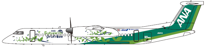 機体は、環境に配慮した活動を表現する特別塗装機のターボプロップ(プロペラ)機「ANA Future Promise Prop」(デ・ハビランド・カナダDash 8-400〈旧ボンバルディアQ400〉型機、登録記号JA461A)