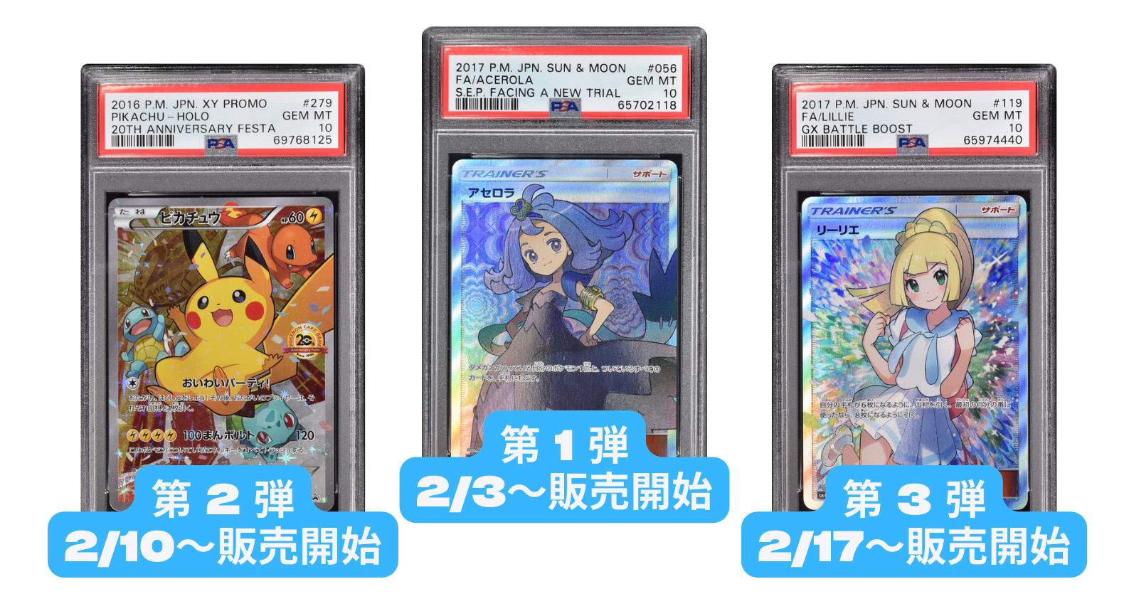 alty株式会社(本社:東京都世田谷区、代表取締役社長:野村優太、以下、alty)が運営する、希少な収集品を1,000円からコレクションできる共同保有プラットフォーム「alty(オルティ)」で、2月3日(金)より3週連続でPSA10のポケモンカードを販売開始します。販売するアイテムは、アセロラ、ピカチュウ(通称:おいわいピカチュウ)、リーリエ(通称:がんばリーリエ)です。