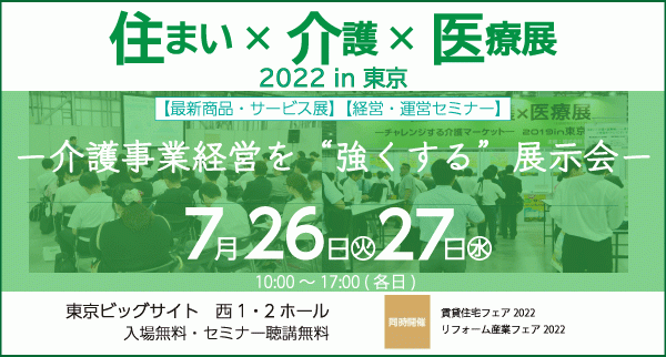 ―介護事業経営を“強くする”展示会― 『住まい×介護×医療展2022in東京』 7/26・27開催!