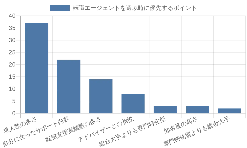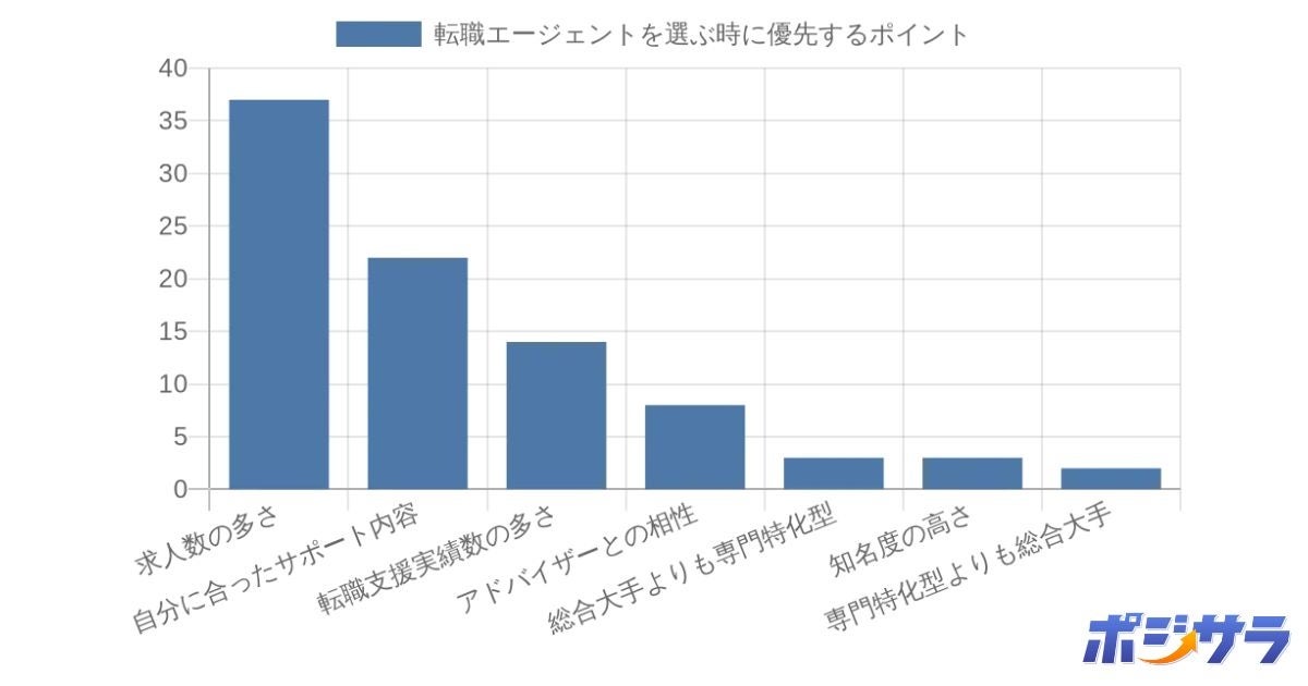 1位は「求人数の多さ」で、2位の「自分に合ったサポート内容」と答えた人との差がかなり開いた形となりました。