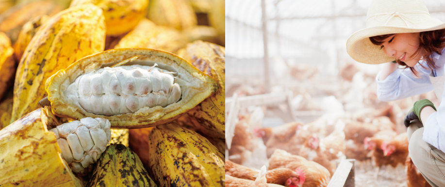 食べる方の健康だけでなく、環境や途上国の人々の人権、また動物にも配慮した商品を開発しています。