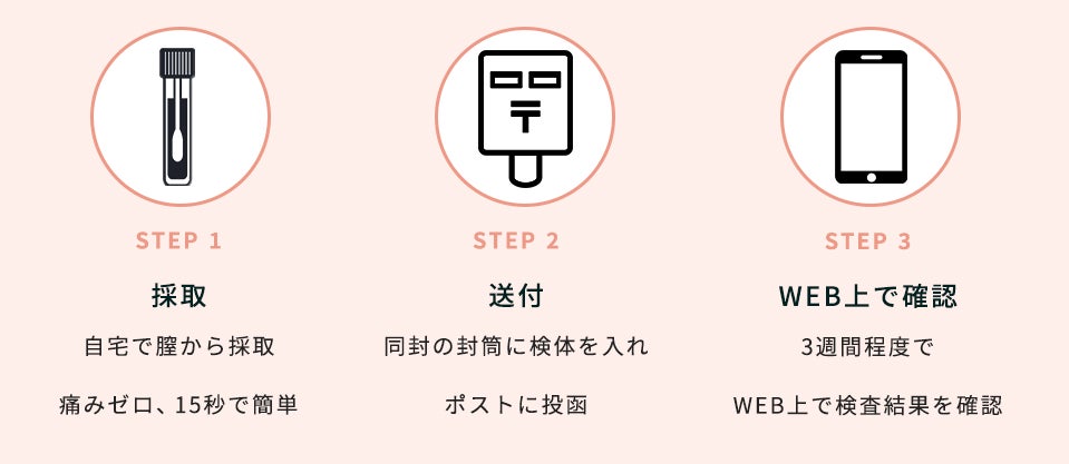 自宅で簡単15秒、痛みなしで腟内検体を採取するだけ。