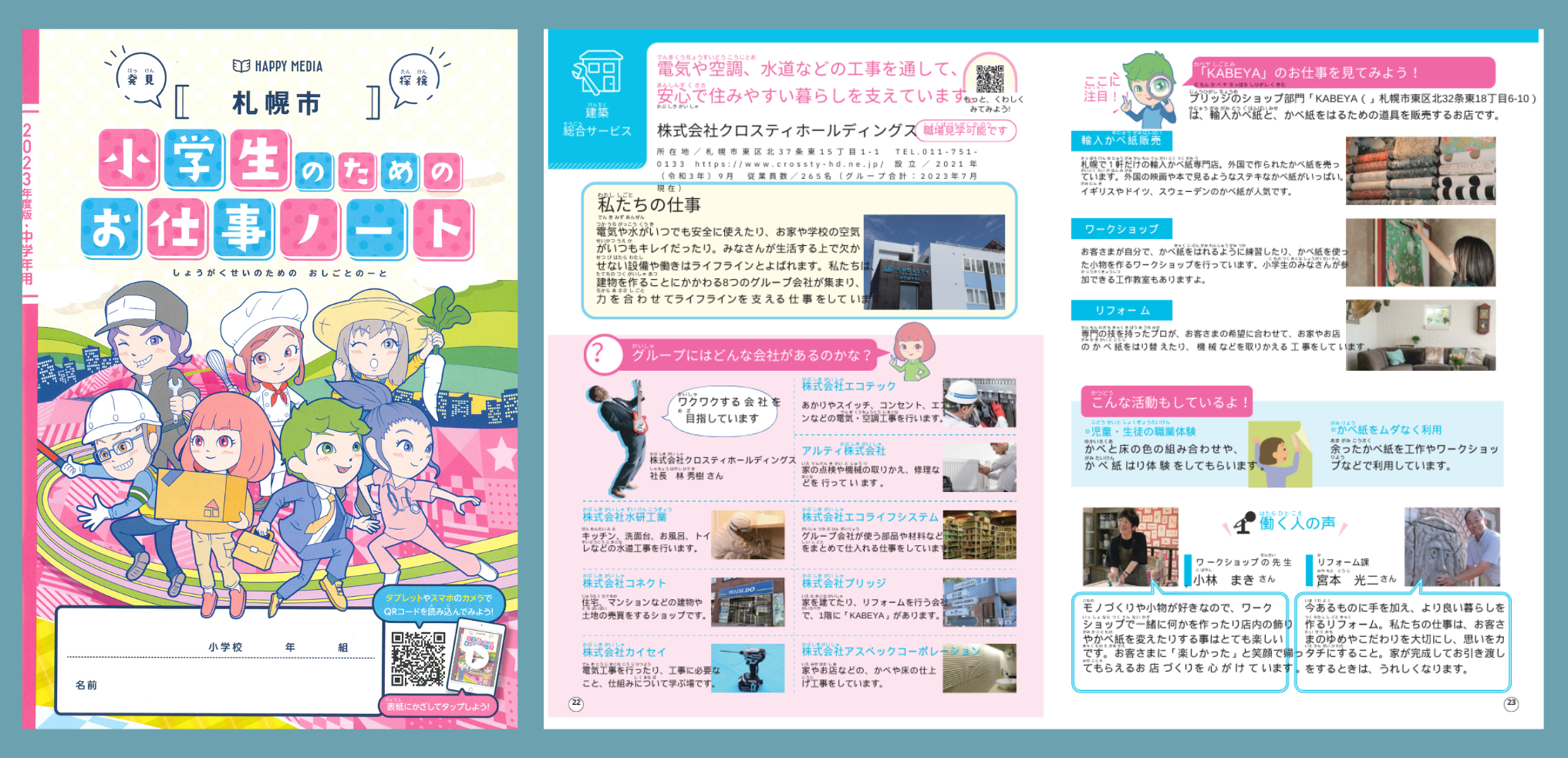 クロスティホールディングス「札幌市 小学生のためのお仕事ノート」で事業を紹介
