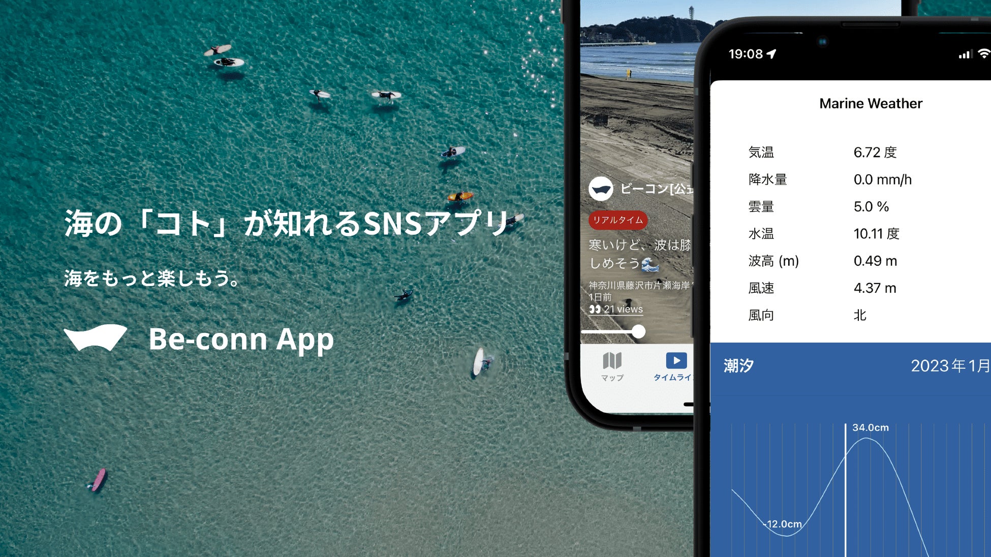 サーファー向けのSNSアプリ「Be-conn(ビーコン、以下Be-conn App)」を運営する、株式会社ビーコン(代表取締役:廣田諒、以下ビーコン)は、App Storeにβ版 Be-conn App をリリースしました。