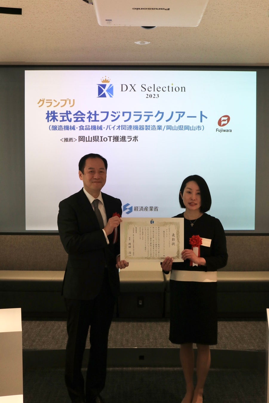 株式会社フジワラテクノアート(本社:岡山市北区、醸造機械製造)は、経済産業省が2023年3月16日(木)に開催した「DXセレクション2023」において、「グランプリ」を受賞したことをお知らせいたします。