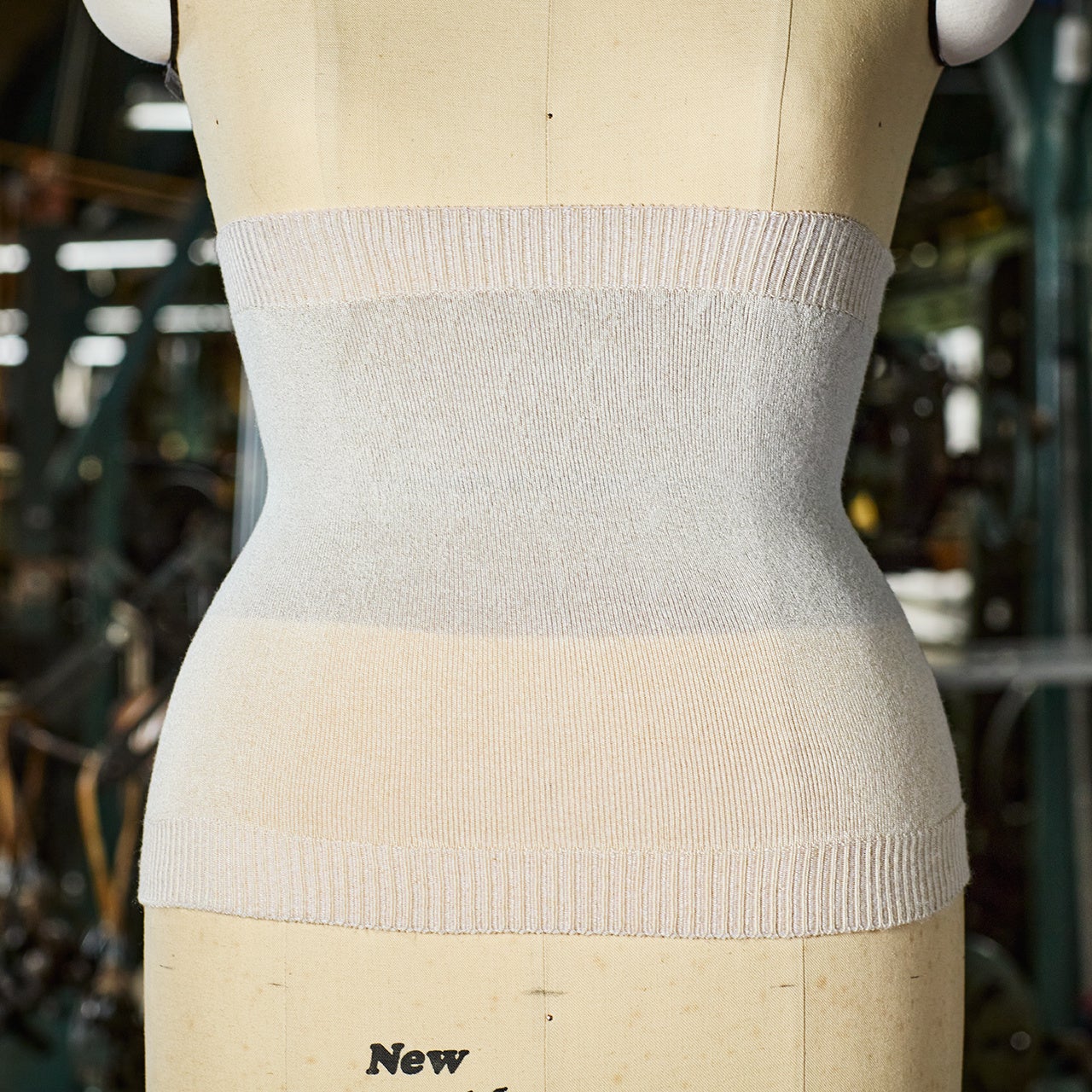 西村織物は、1587年に生糸商として創始して以来435年、絹糸とともに歩んできました。そして、博多織最古の織元として、日々帯を織り続けております。そんななか、「製造の過程においてどうしても発⽣する計算外の最⾼級の絹⽷アップサイクル」は西村織物にとって、常に大きな課題でした。大変細く繊細であるため、撚糸としての再利用にはハードルが高いためです。しかし、今回これらの課題をクリアするような⾼い技術を持つニットメーカーと出会い、開発が実現しました。最⾼級の絹⽷の持つ光沢や肌ざわりの良さが特徴のニットアイテムです。博多織業界では初めて、永年の課題であった⽷のアップサイクルをシルクニットという形で実現。着物⼈⼝が減少するなかで博多織や絹⽷のすばらしさを知って頂ける機会を創出します。