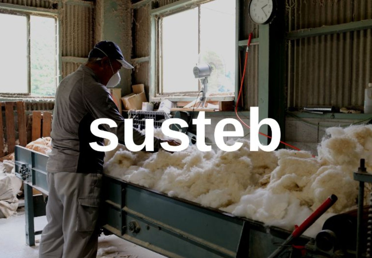 sustebは、寝具を廃棄するのではなく再生素材に変え、新たな寝具や衣料品に再生させる、サーキュラー・エコノミーを実現するブランドです。