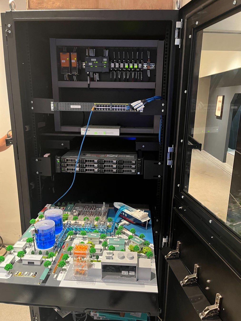 これらのシミュレーションシステムはサーバーラック1台分の大きさでありながら、お客様の操業環境を仮想的に構築し、正確に再現することが可能です。このようなシミュレーションシステムを用意することで現実的に起こりえる脅威に対してのレジリエンス検証や、現場職員への具体的なセキュリティ教育の実施、最新の脅威情報にも基づく操業環境では実施できないサービス拒否(DoS)攻撃をベースとしたOTペネトレーションテストを実現します。