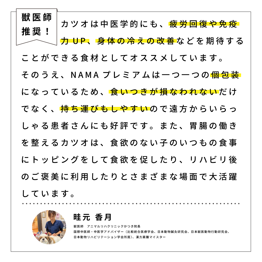 NAMAプレミアムは、国産本鰹を100%使用した犬猫向けのおやつです。