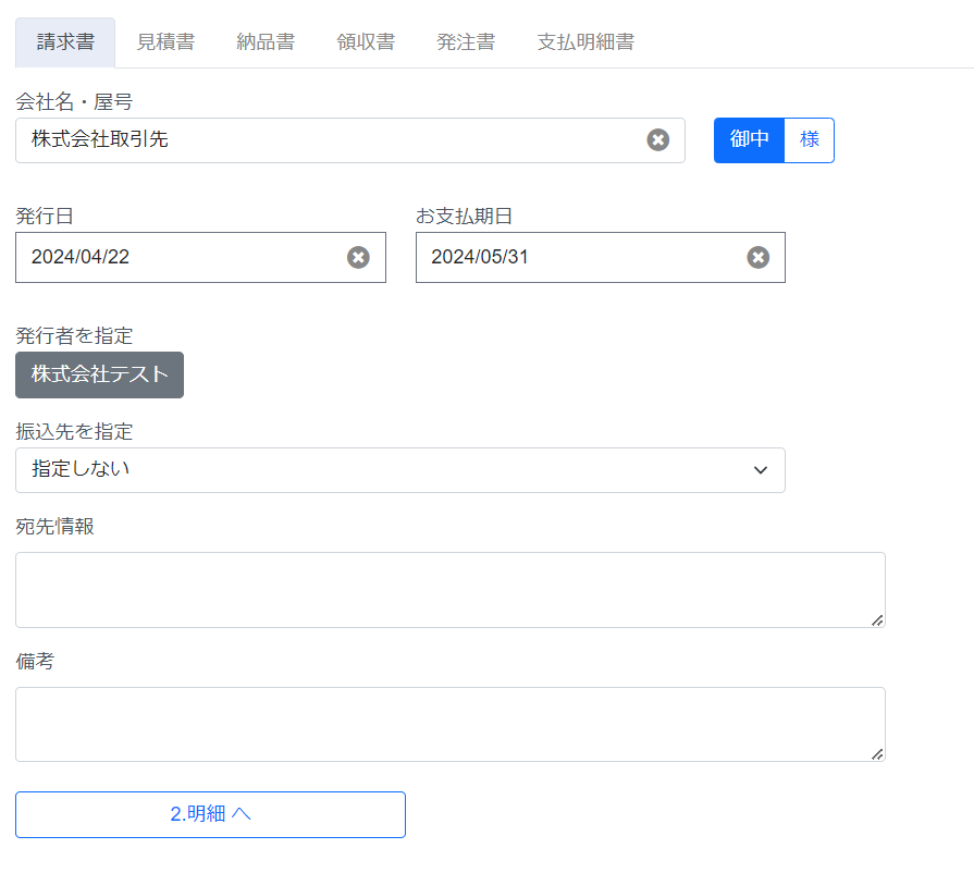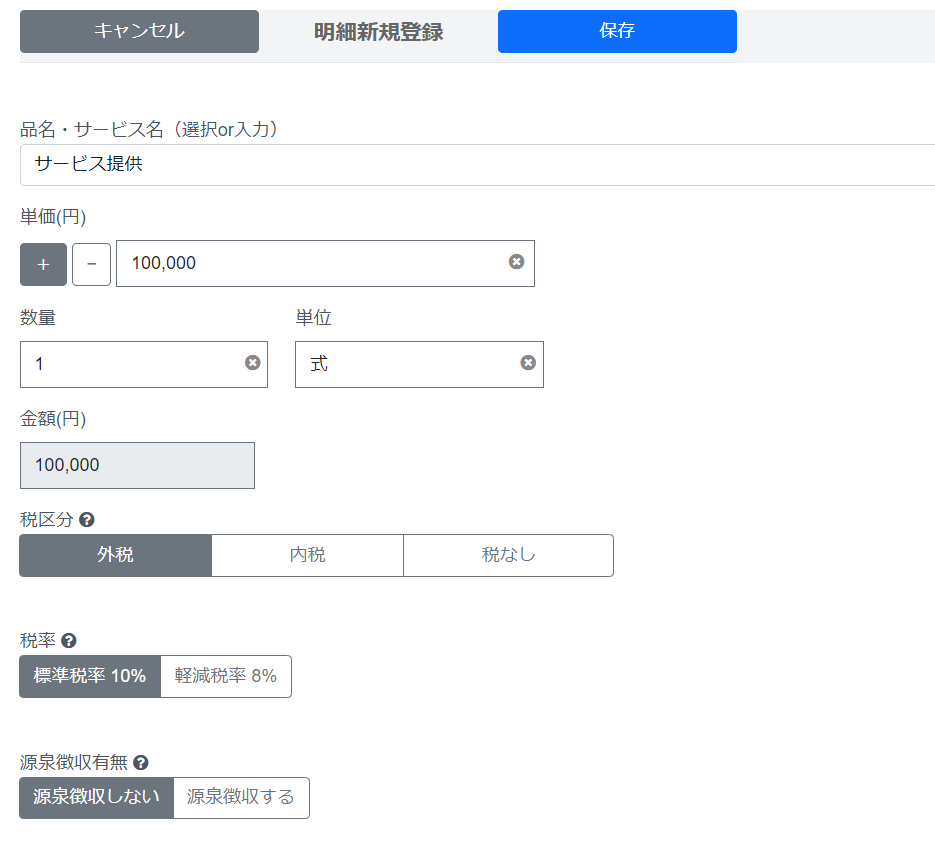 請求書の場合は明細を入力します。