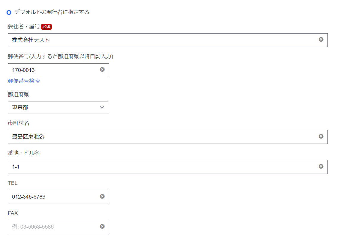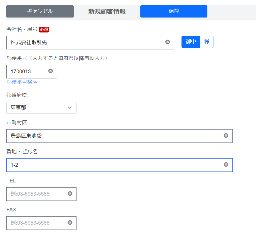 送付先の取引先情報を入力します。