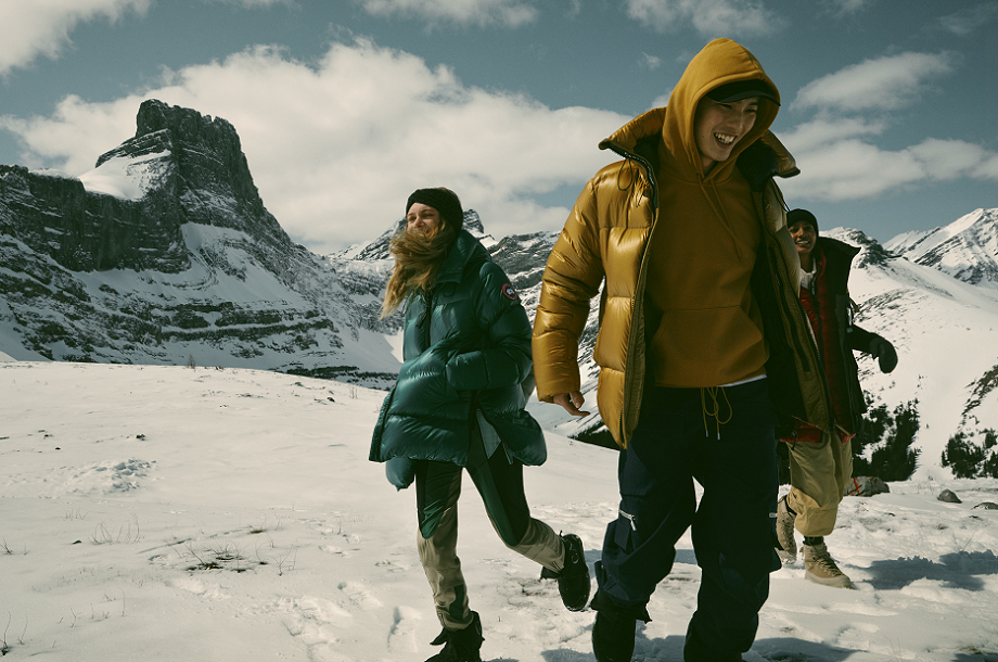 今回のキャンペーンは、アルバータ州のカナディアン・ロッキーで撮影され、軽量のアウターウェア、通気性の高いアパレル、新たなフットウェアなど、カナダグースの最新コレクションにふさわしいロケーションとなりました。