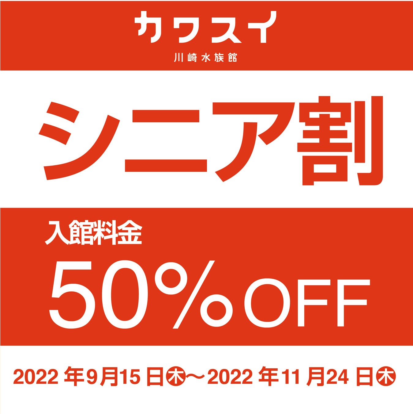 本キャンペーンでは、2022年9月15日(木) ~2022年11月24日(木)の期間中の毎週木曜日、65歳以上のお客さまを対象に入館チケット料金を50%割引いたします。