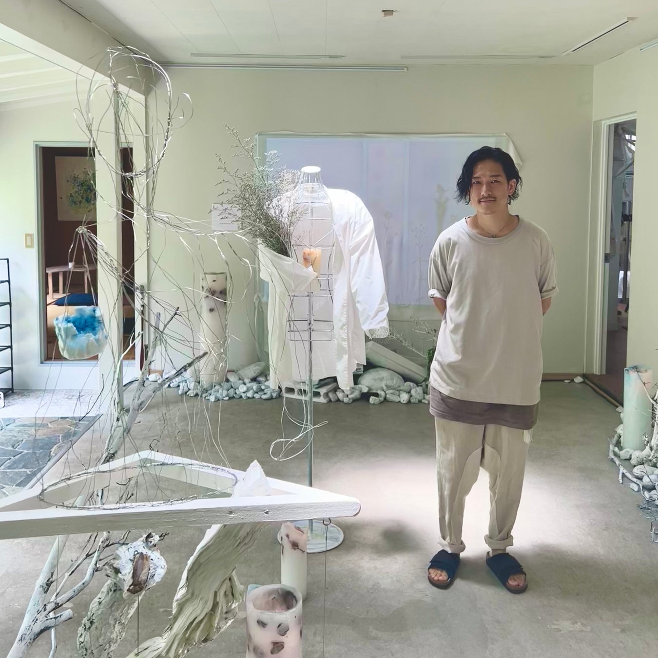 個展会場では、ミナイマサシが空間演出を行なったアート空間を体験することができる。