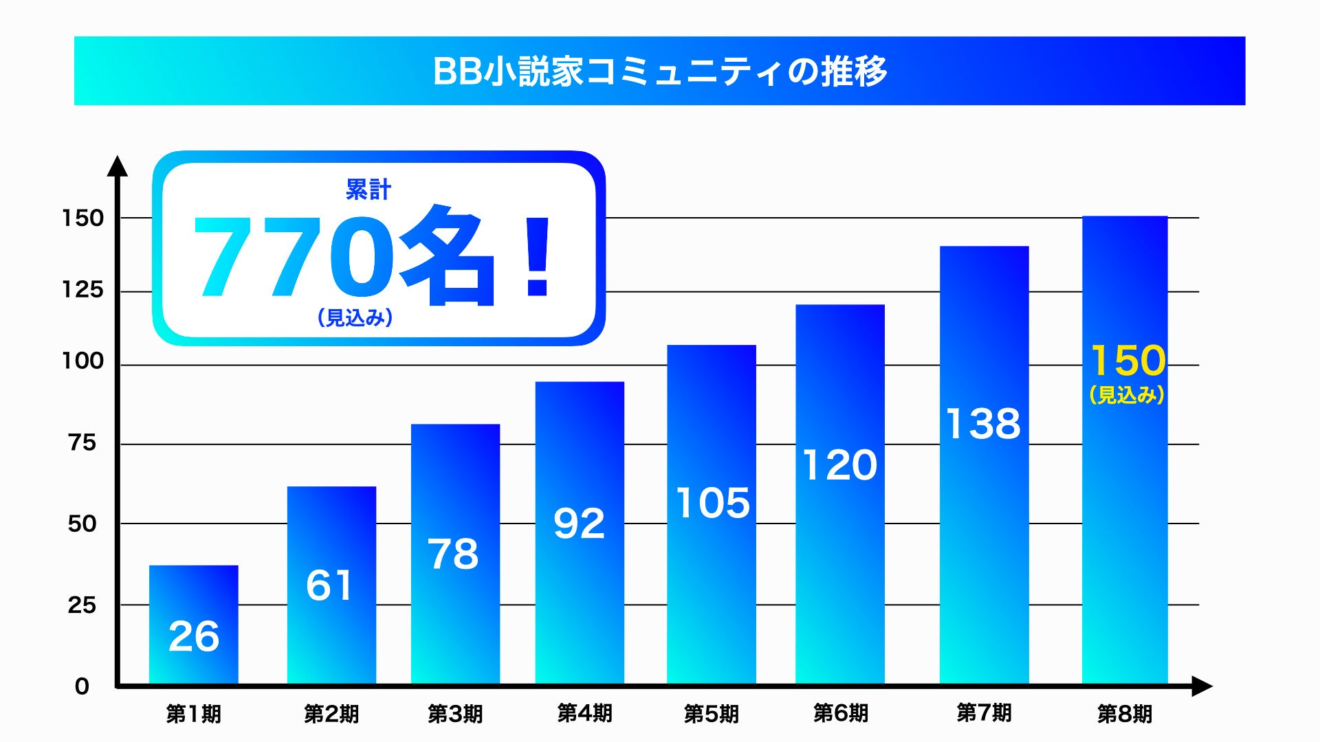 ↑国内最大級の小説家集団『BB小説家コミュニティ』の成長推移↑