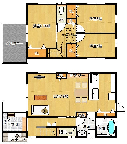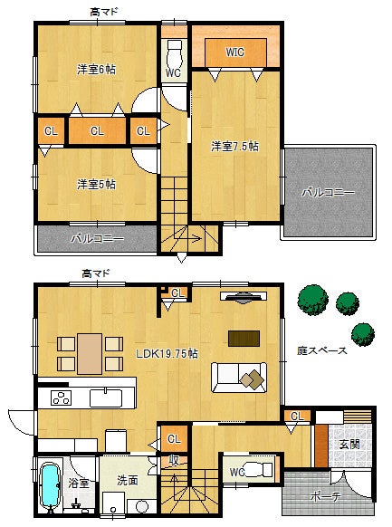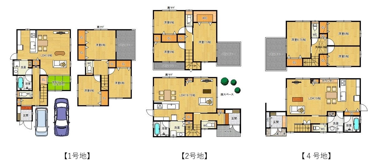 | 2号地 | 131.40㎡(39.75坪) | 95.58㎡(28.91坪) | 5,440万円 | 木造2階建 |