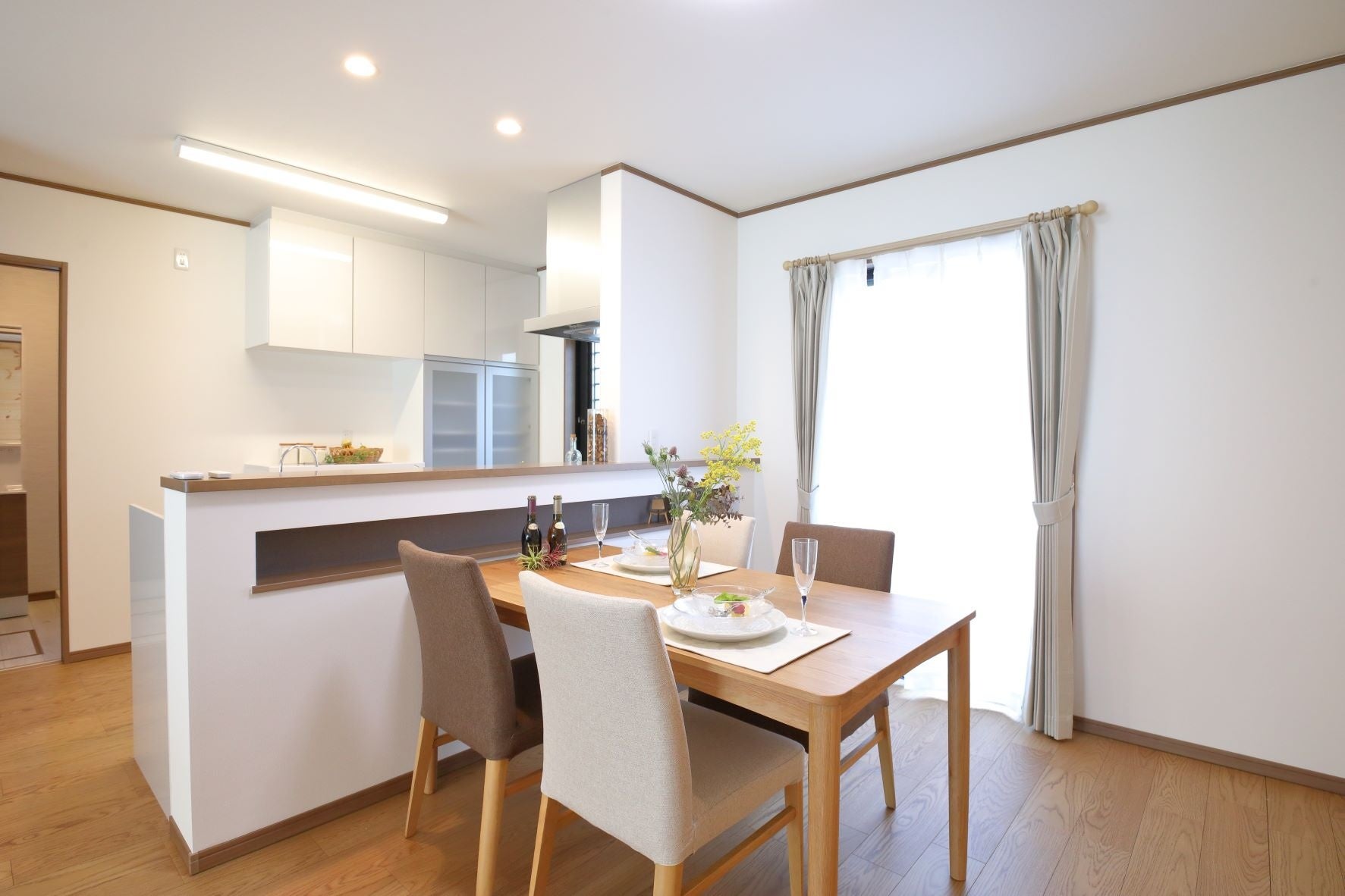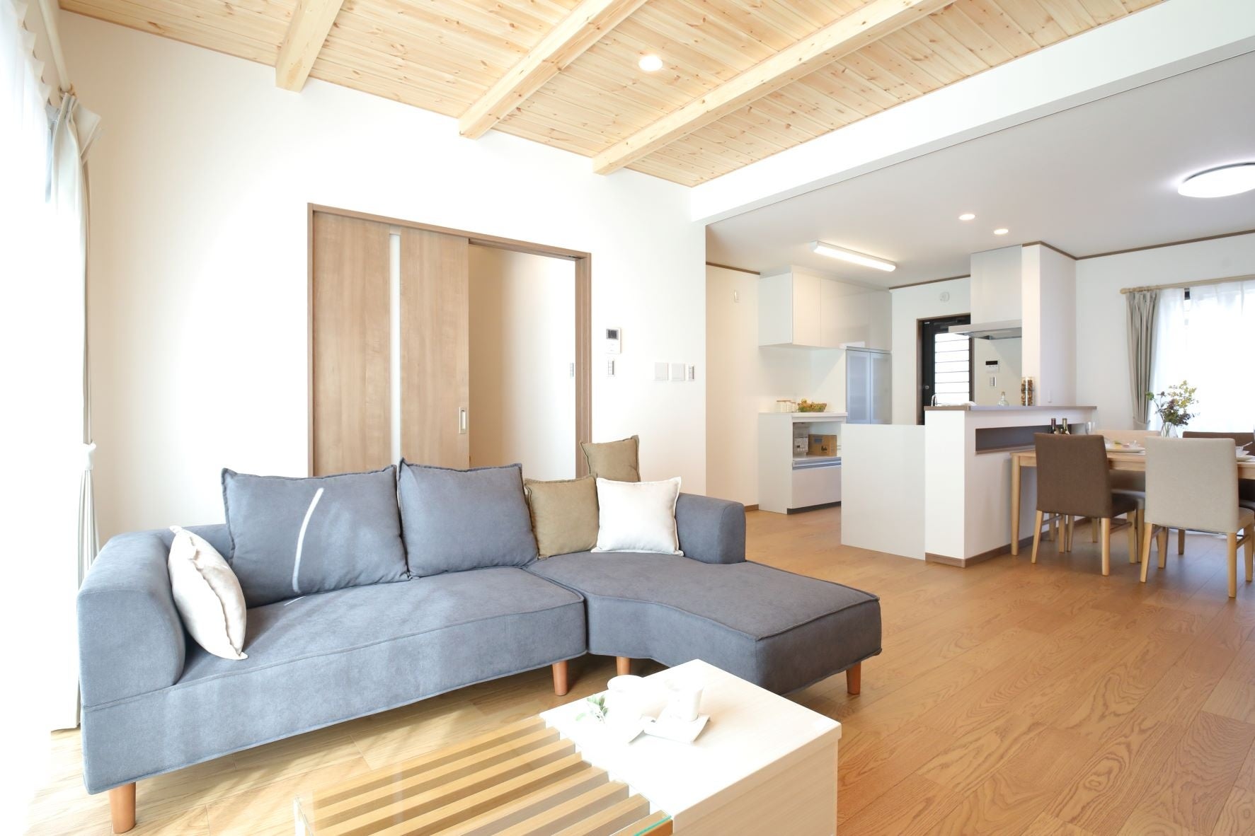 教育施設・金融機関・買物施設が全て徒歩10圏内にあり、生活環境の整った便利な立地にハートフルシリーズ“天然木の家”が誕生!天井が高く開放感のある空間に、天然木をたっぷり使用。木の香りに包まれることで、リラックス効果が期待できるほか、年数を重ねる度に木の色合いが変化していくので経年を楽しむ事ができます。収納式食洗器搭載のシステムキッチンや節水シャワーヘッドなど、設備はどれもグレードの高いものを採用しております。リビングには床暖房、浴室には暖房・衣類乾燥・換気機能にミストサウナも完備。また、各居室に収納を設けております。さらに、新生活を応援するため、全室エアコンを設置。コーディネーターが選んだ照明やカーテン、ダイニング・ソファセット、カップボード・シューズボックスなども付いております。