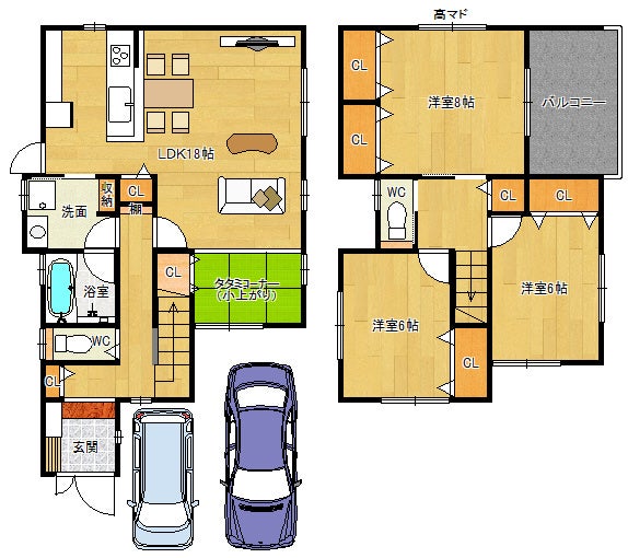 Type-3LDK+タタミコーナー / 全居室に収納あり / 駐車2台可能(普通車&軽自動車)
