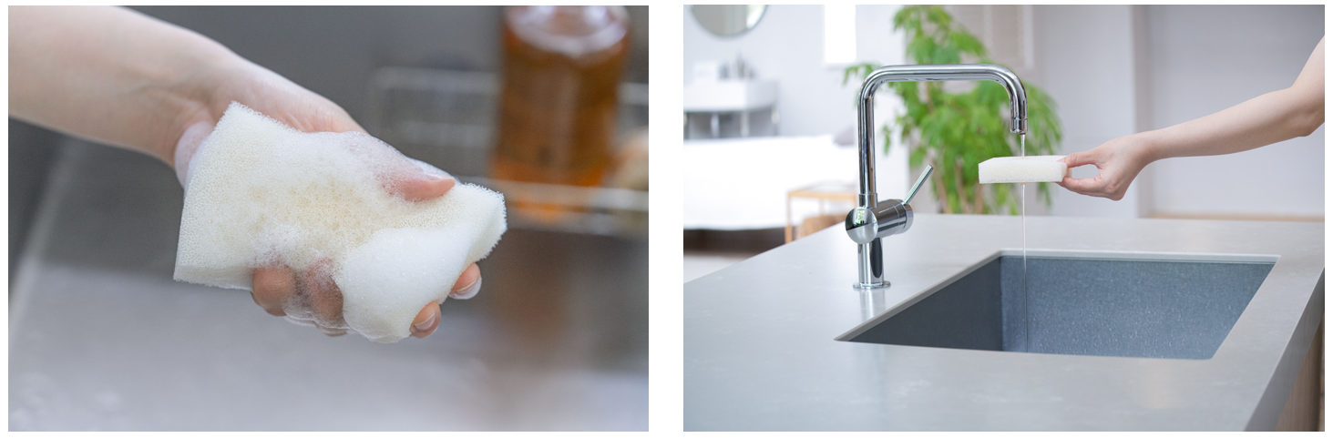 ・およそ70年(※)の技術力で石油由来のキッチンスポンジと同等の使用感を実現