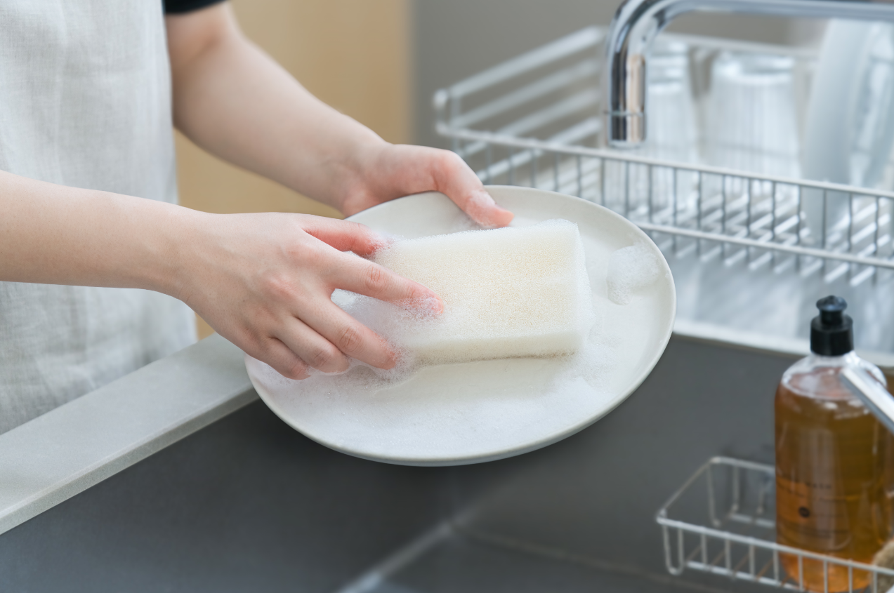 毎日の食器洗い時に使用するだけでカーボンニュートラル社会に貢献 当社初のヤシ由来の植物性素材を採用し、地球へのやさしさと使いやすさを両立した「サステナブル スポンジ」を発売