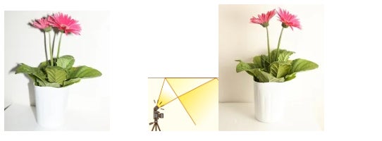 左の直接光を当てた花の影は光の収束性によりくっきりしています