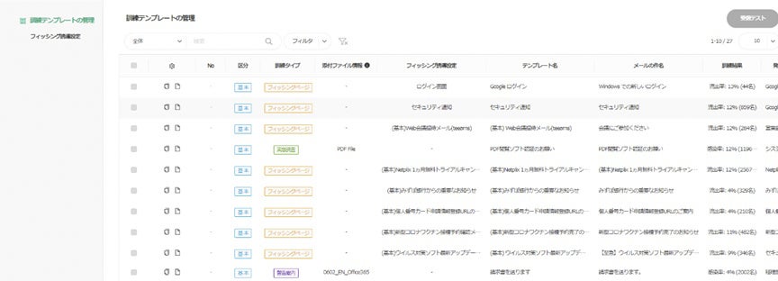 充実した基本テンプレートから、お客様のお好みに合わせて本文内容から訓練の種類、添付ファイルのタイプまで細かくカスタマイズできます。