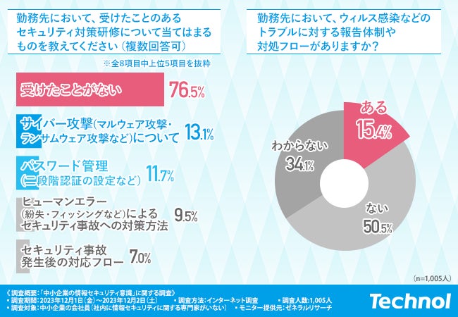 そこで今回、情報を最新の脅威から守る予防訓練サービス『MR-SAT』(https://mrb-security.jp/lineup/mr-sat)を運営する株式会社テクノルは、中小企業の会社員を対象に「中小企業の情報セキュリティ意識」に関する調査を実施しました。