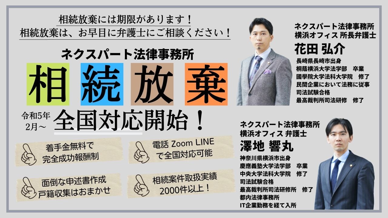 詳しくは、ネクスパート法律事務所 相続放棄特設サイト https://nexpert-law.com/souzoku/souzokuhouki-lp/ を参照ください。