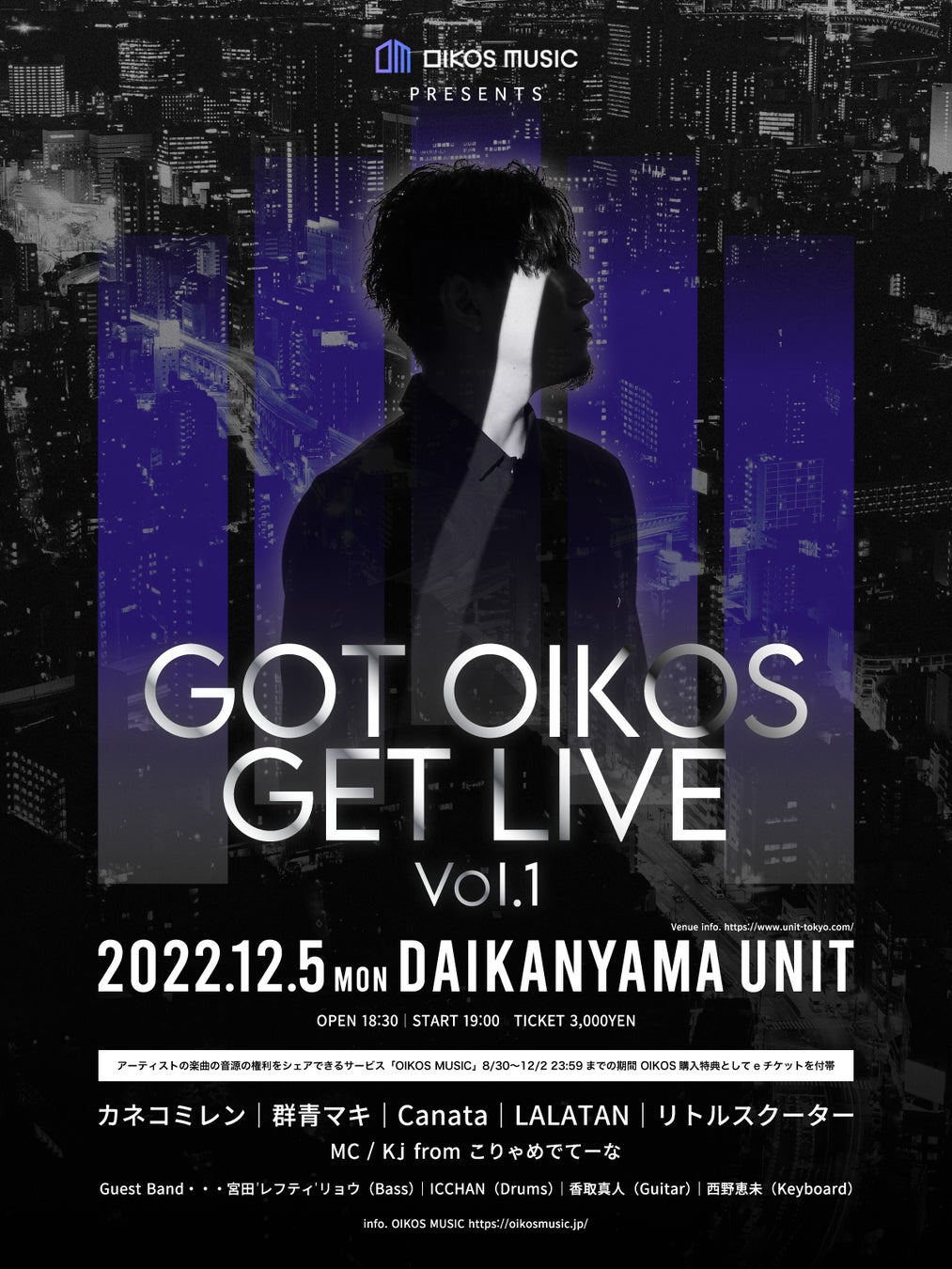 アーティストとファンの応援文化の新しいカタチを提唱するOIKOS MUSIC株式会社(本社:東京都千代田区 以下 OIKOS MUSIC/当社 )は、NFT(ノン・ファンジブル・トークン:非代替性トークン)を活用した音楽ライブ「GOT OIKOS GET LIVE Vol.1」を12月5日(月)代官山UNITにて開催いたします。