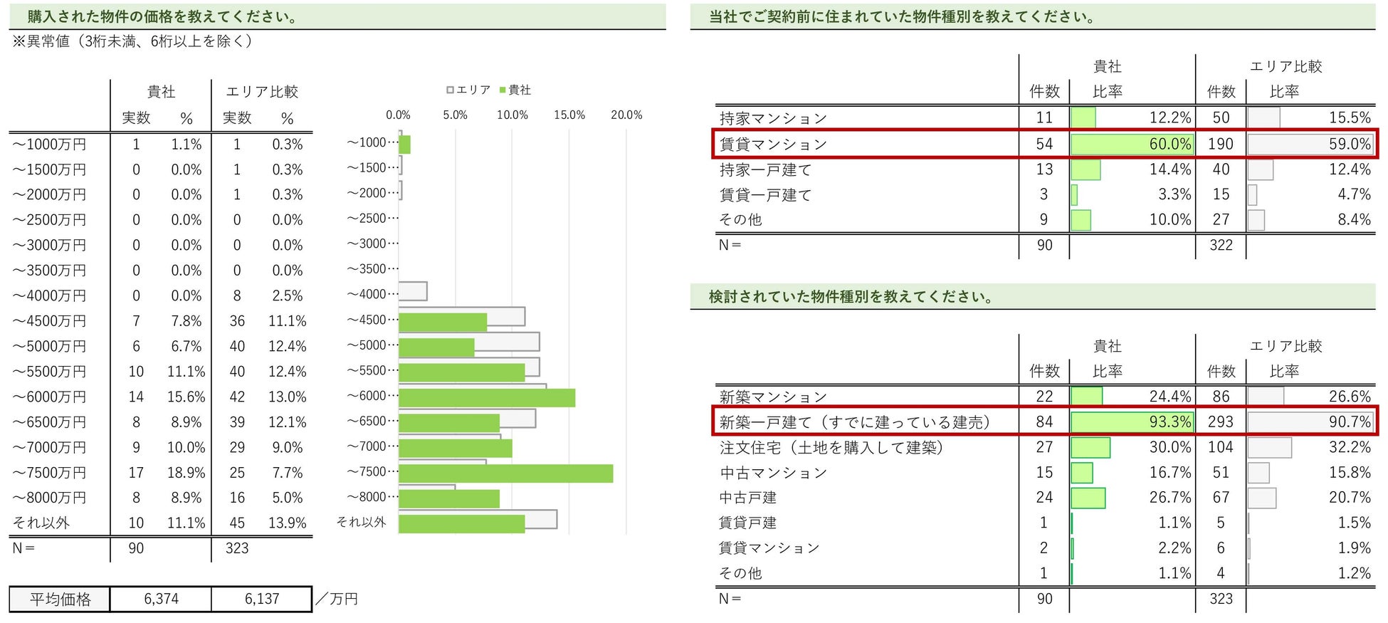 購入物件の平均価格は6,374万円で、賃貸物件からの一次取得層が63.3%、持ち家比率は26.6%、