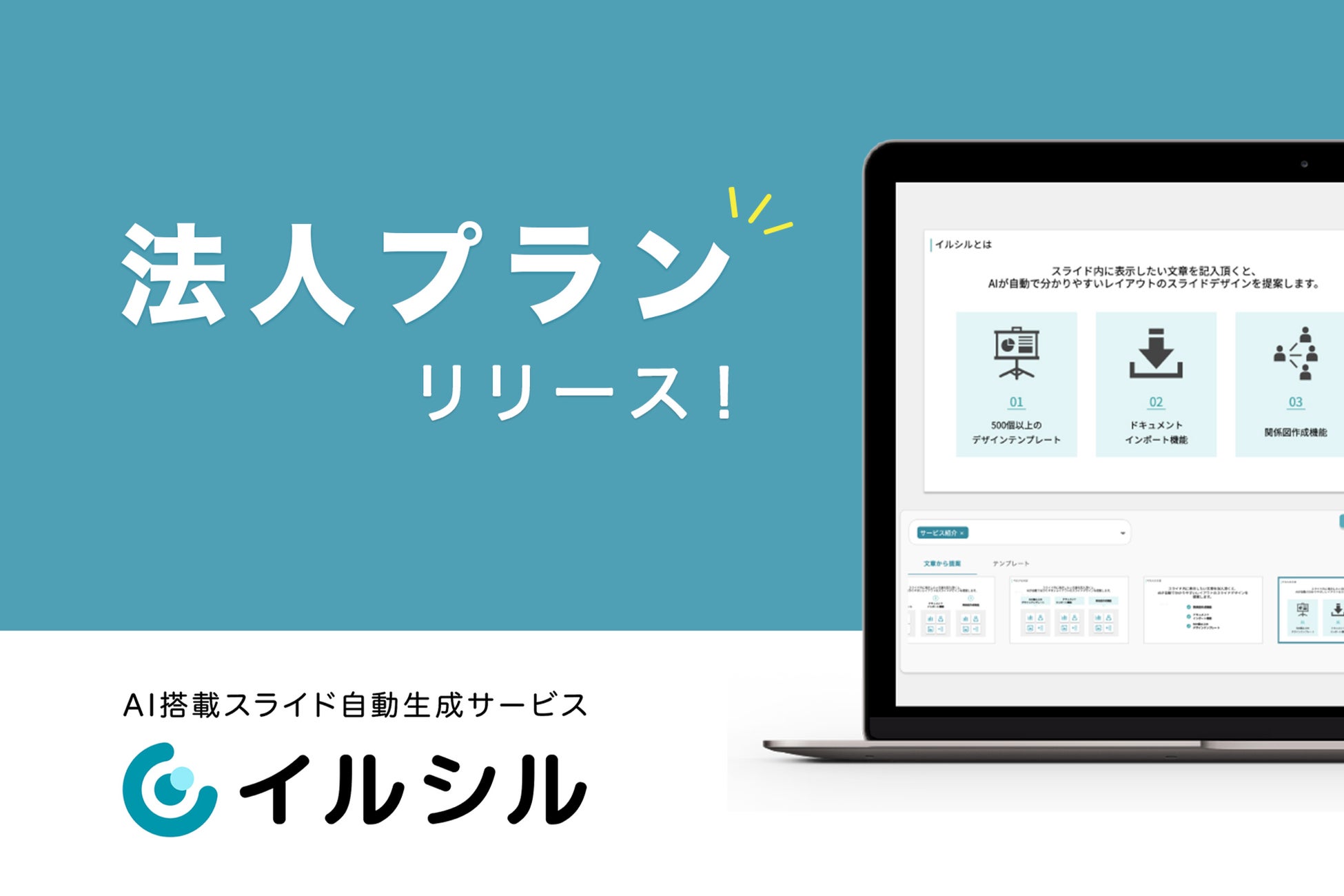 総ユーザー数3万人突破!日本人向けのAI搭載スライド自動生成サービス「イルシル」が法人向けプランの提供を開始