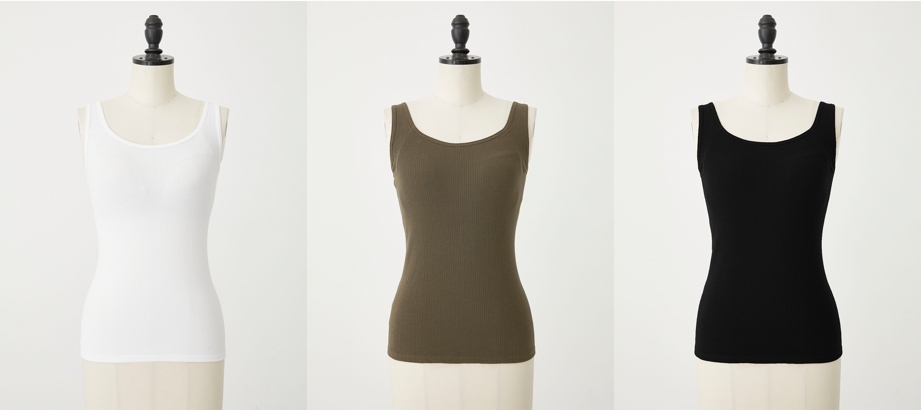 ランダムリブ素材の日常使いにも抜群なブラタンクトップ。多くのブラタンクは万人に合うようにノンワイヤーの為、胸の形が崩れがちに。そんな要素を解消したのがmisora のブラタンクトップ。