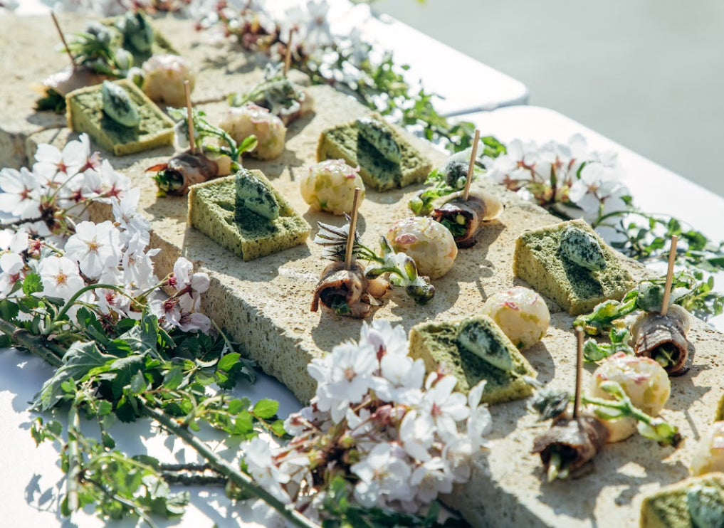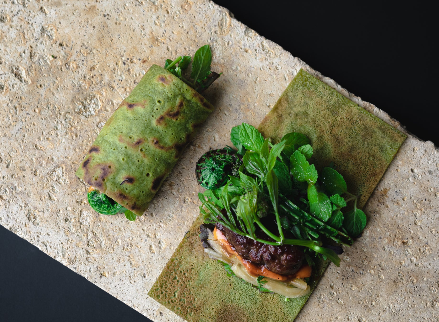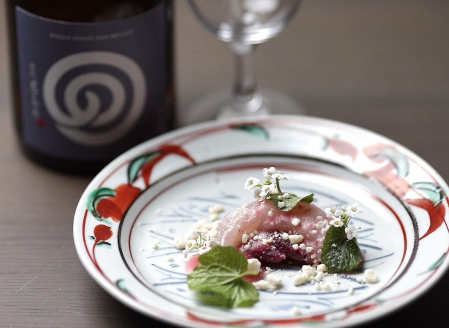 ペアリングドリンクには徒歩5分の酒蔵「農口尚彦研究所」の銘酒を取り入れ、ノンアルコールペアリングは地元で採取した野草やハーブを使ったオリジナルドリンクで構成。また器には、地元の伝統工芸品である九谷焼をメインに使用。