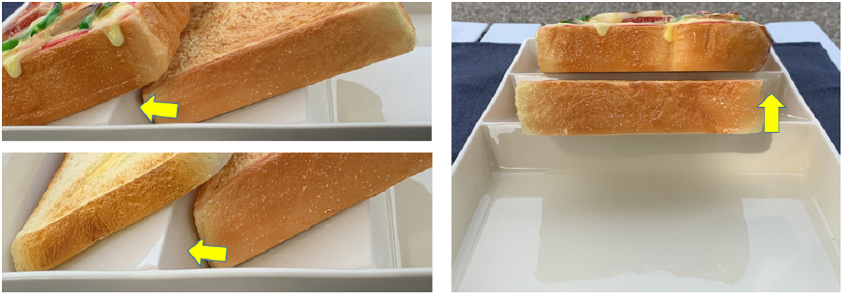 ① トーストのバター面が触れ合うことなく、重ねず置くことが出来ます。
