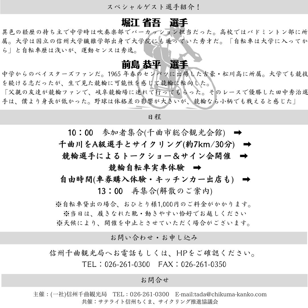 ~サテライト信州ちくまコラボイベント~現役A級競輪選手と千曲川をサイクリング