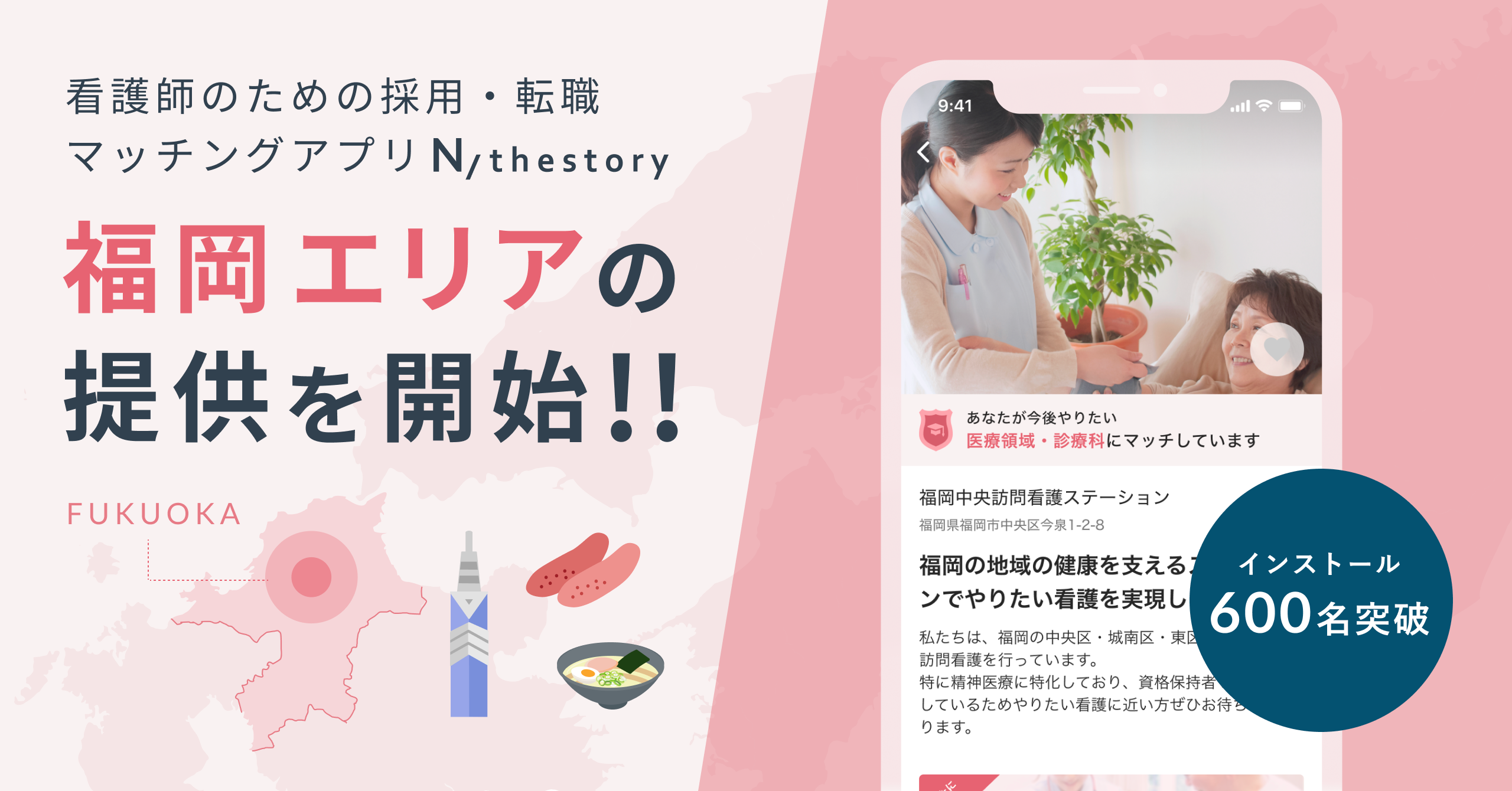 看護師と医療機関の理想的なマッチングを大事にするスカウト型採用・転職マッチングアプリ「N/thestory(ジストリー)」福岡エリアに進出‼訪問看護を中心に地域の健康を支える医療機関等の採用支援を開始