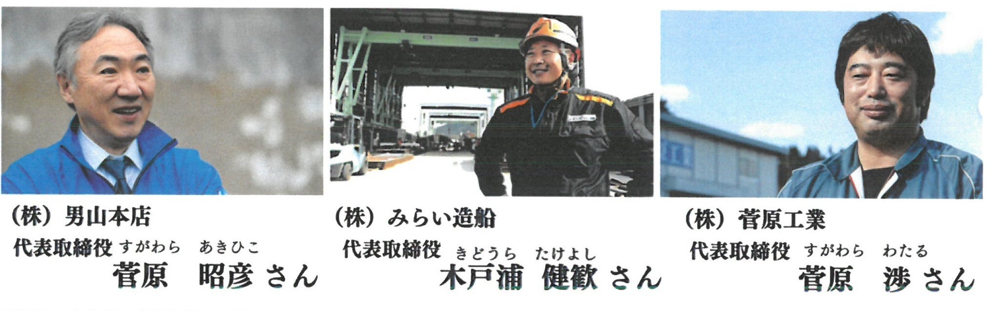 水産のまち気仙沼を支える造船会社。東日本大震災で壊滅的な被害を受けた気仙沼市の地元造船ライバル5社が「100年続く会社づくり」を目指して合併。2019年に新工場完成し、水産のまち気仙沼をけん引する。