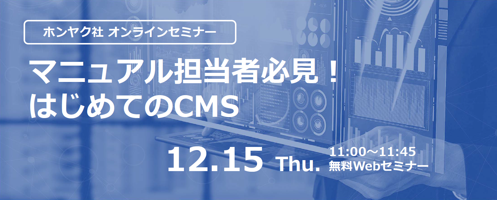 ホンヤク社オンラインセミナー『マニュアル担当者必見!はじめてのCMS』12月15日(木)開催
