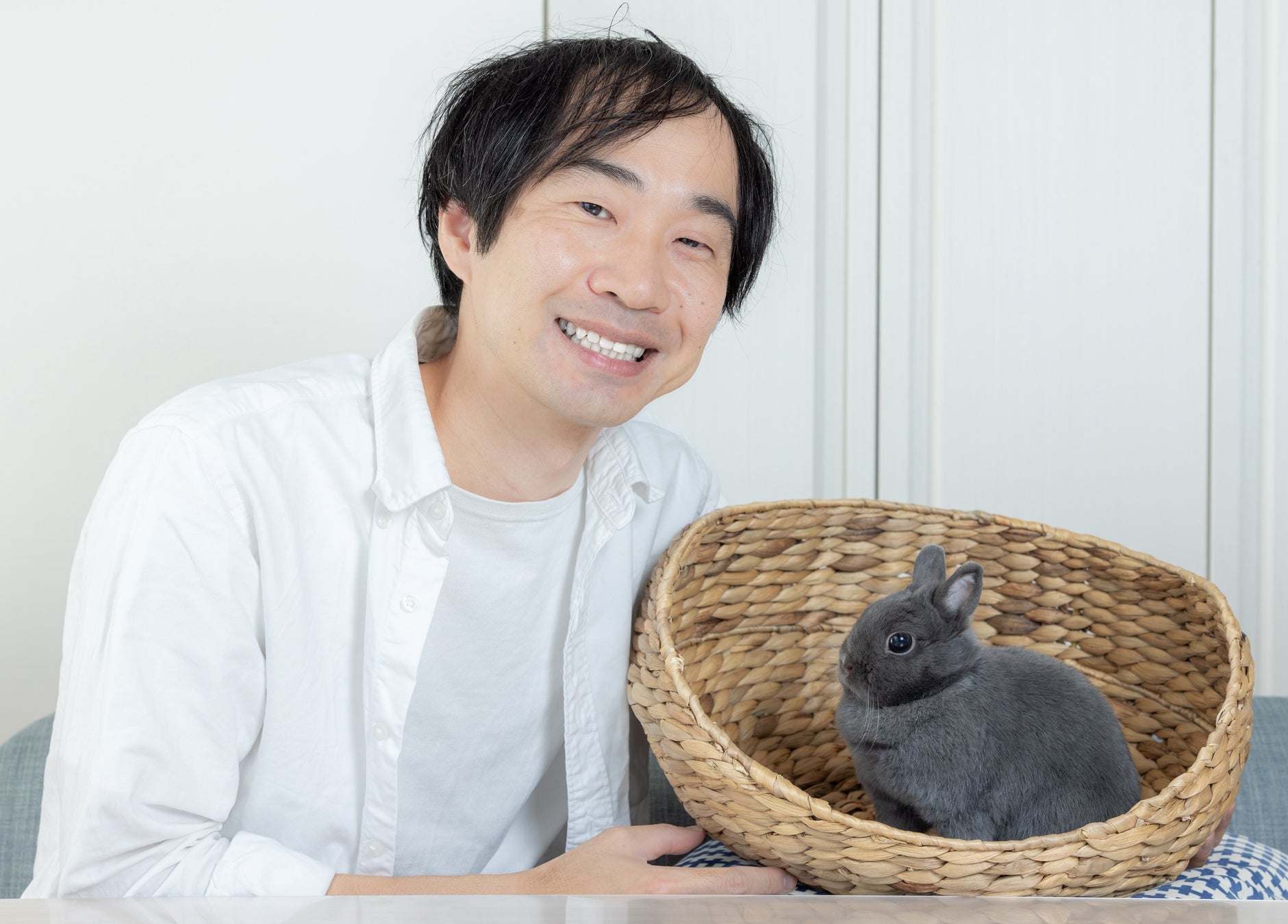 一緒に写っているのはウサギの「てっく」ちゃん(写真)。「てくてく歩く」と「テクノロジー」を掛けて命名。ないかんMeetUPでは毎回(スライド内で)参加しており、密かに人気があります。