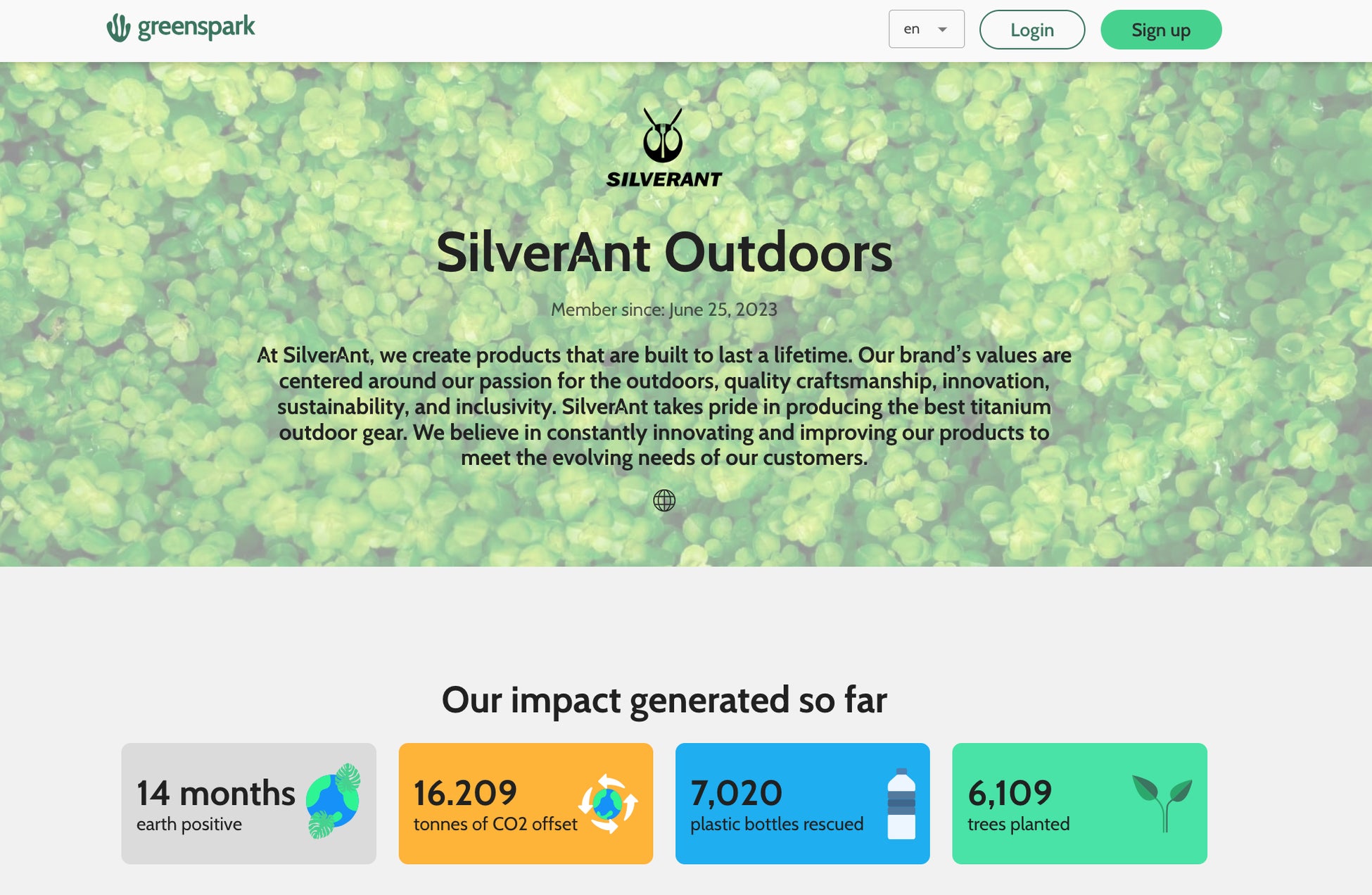 シルバーアントは、環境に優しい未来を目指し、グリーンスパークという環境保護団体と提携。お客様が商品を1つ購入するごとに、以下の環境保護活動を行っています。