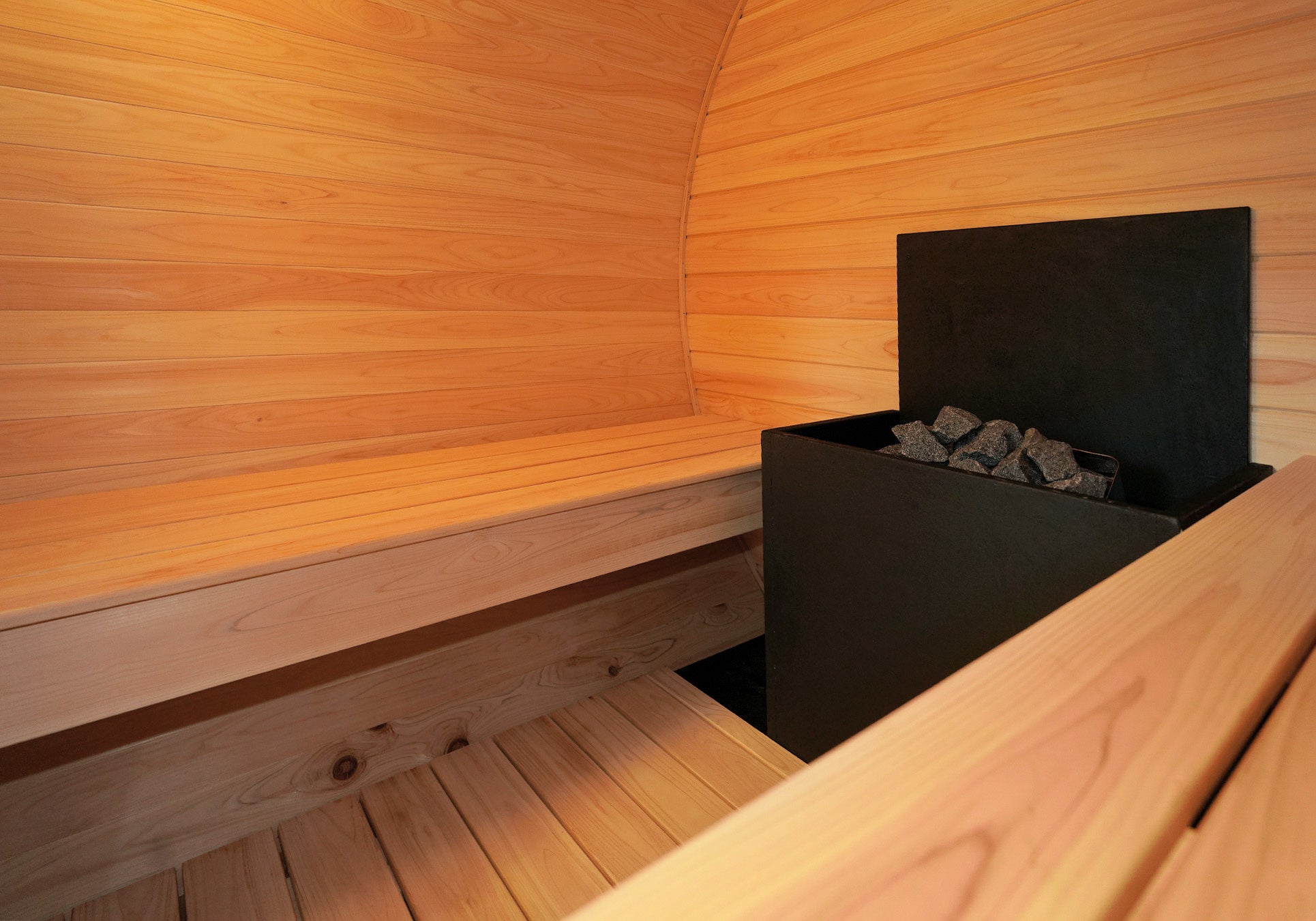 バレルサウナは、その形状により熱を均一に保つことに優れ、ロウリュ時の熱が効率的に室内に循環することから、より快適にサウナを楽しむことができます。