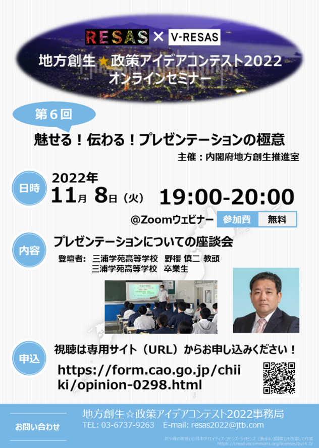 RESAS×V-RESAS地方創生☆政策アイデアコンテスト2022オンラインセミナー「魅せる!伝わる!プレゼンテーションの極意」(座談会編)を開催します