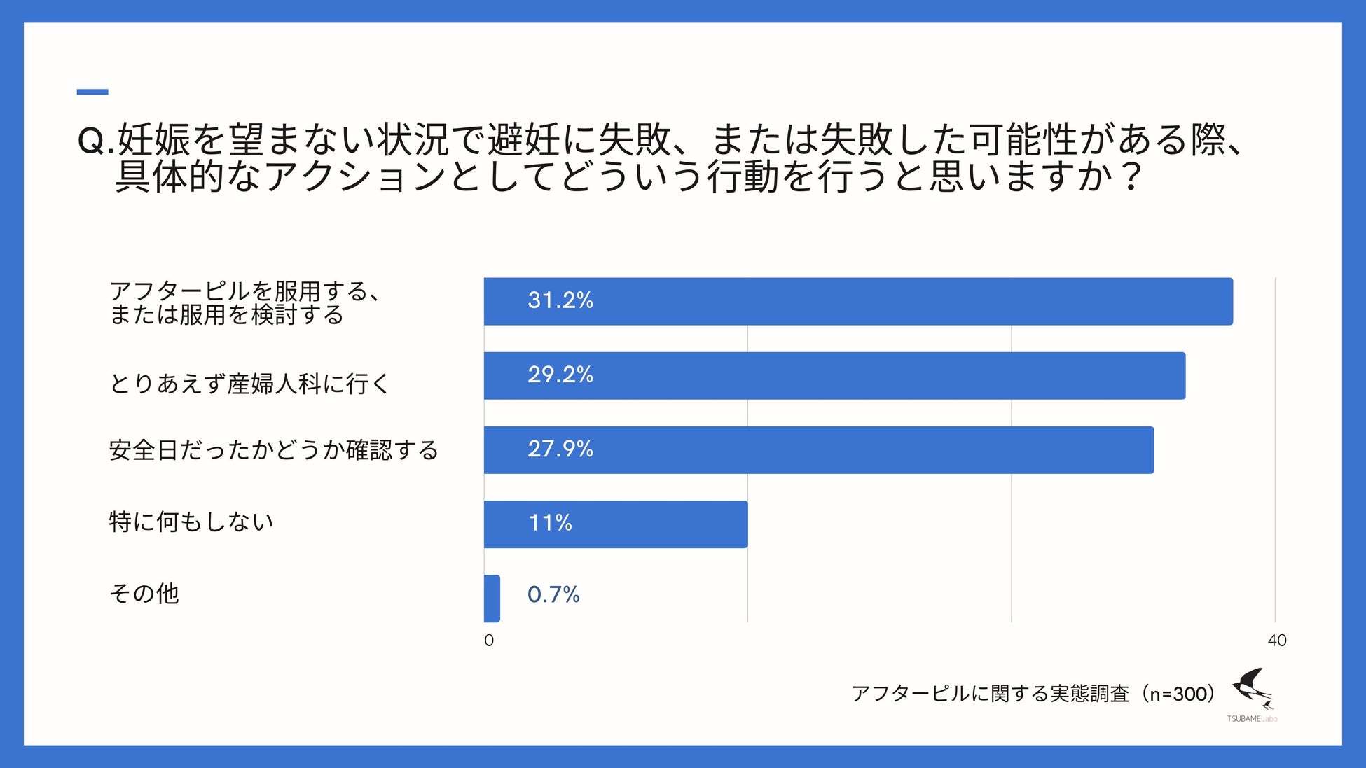 アフターピル等、女性の体に関するテーマについて正しく知っていただくために、つばめLaboでは今後も定期的な調査の実施を予定しています。