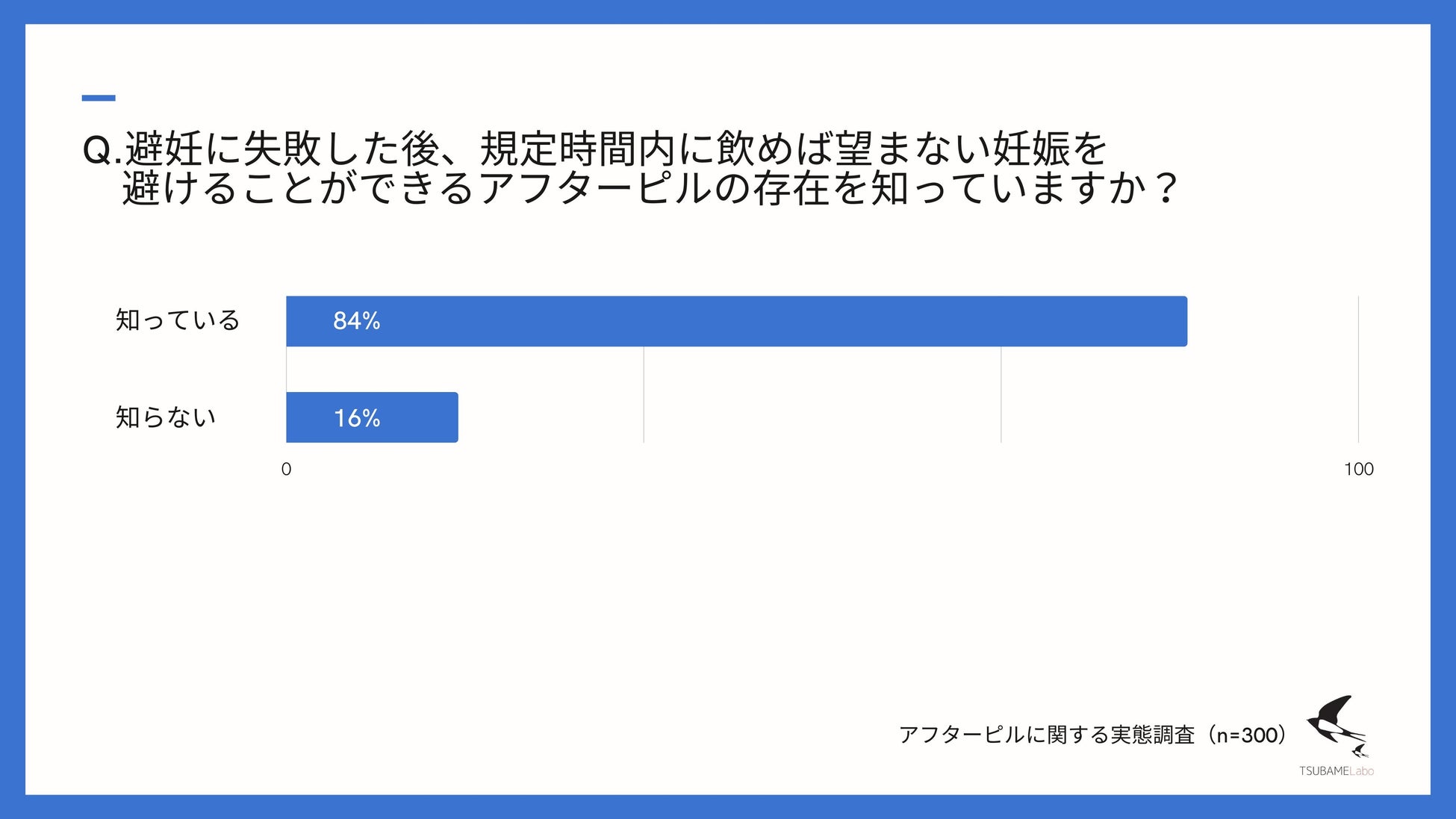 調査対象者の16%がアフターピルの存在を知らないと回答