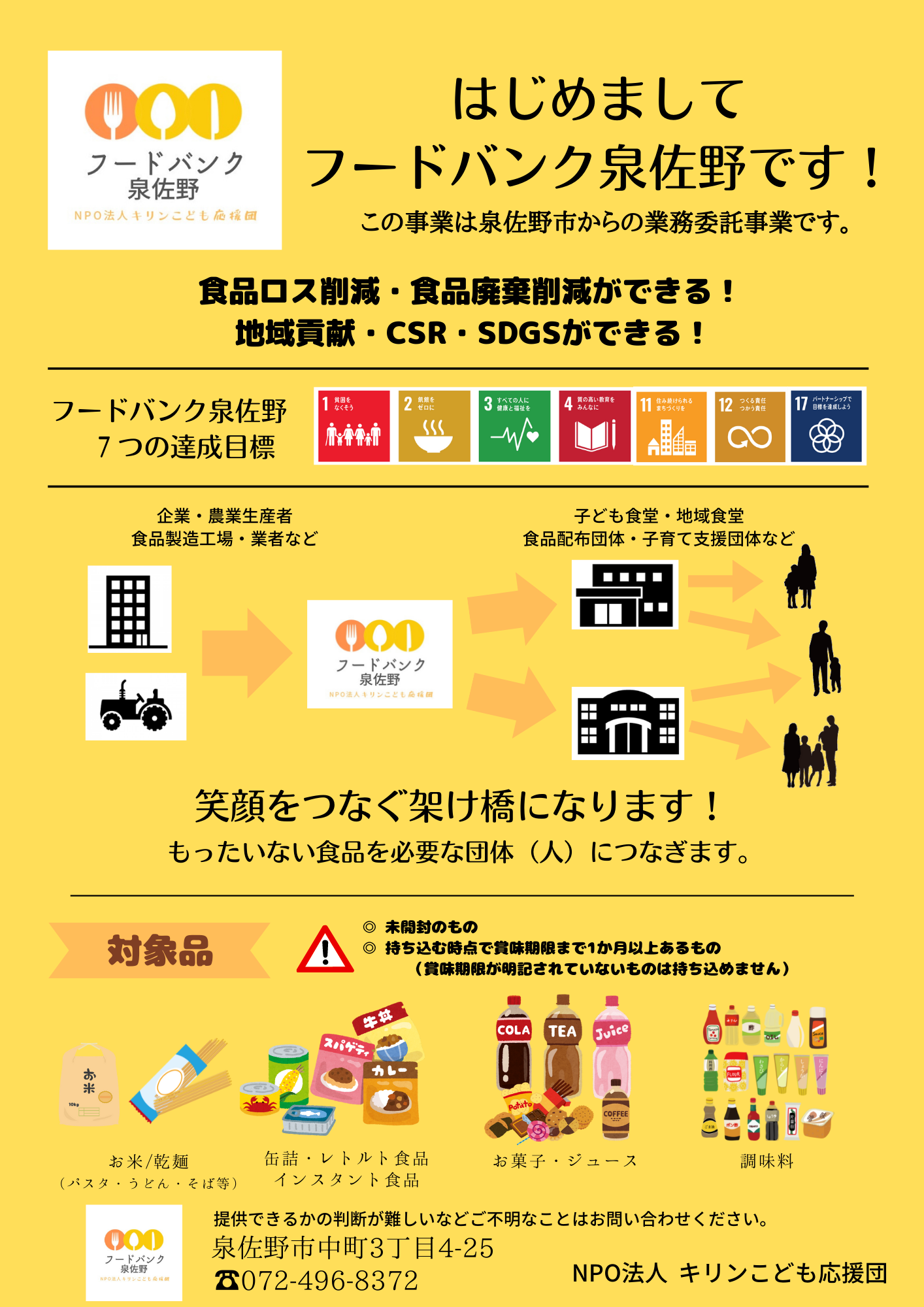 ホームページ:https://foodbank.izumisano.kirin-npo.com/