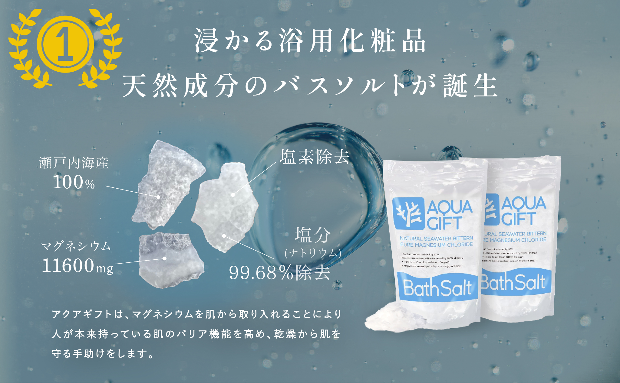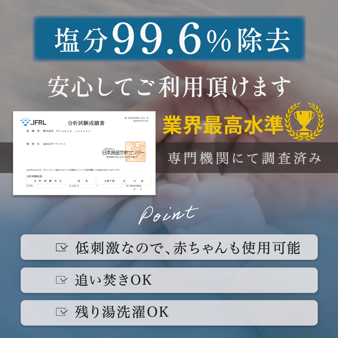 【業界最高水準】塩分除去率「AQUAGIFT」バスソルト塩分99.68%カットだから追い焚きOK&風呂釜を傷つけない