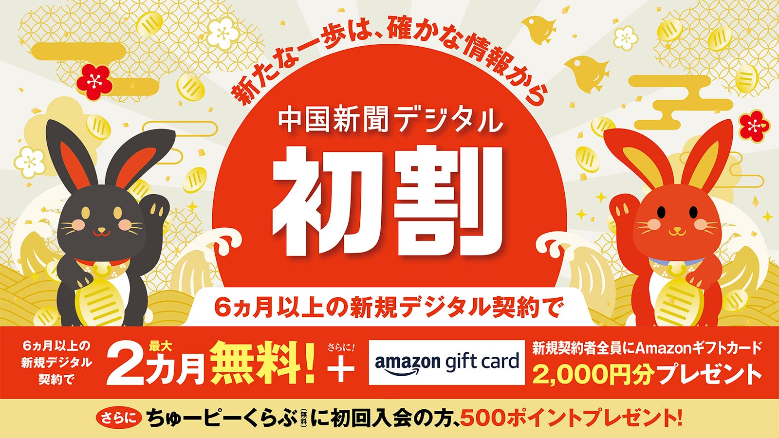 株式会社中国新聞社(代表取締役社長:岡畠鉄也、以下「中国新聞社」)は、1月1日から1月31日までの間、中国新聞デジタルキャンペーン「初割」を実施いたします。中国新聞デジタルのサービスのうち、「朝刊デジタルコース」、「朝刊紙面ビューワーコース」の2コースが対象です。