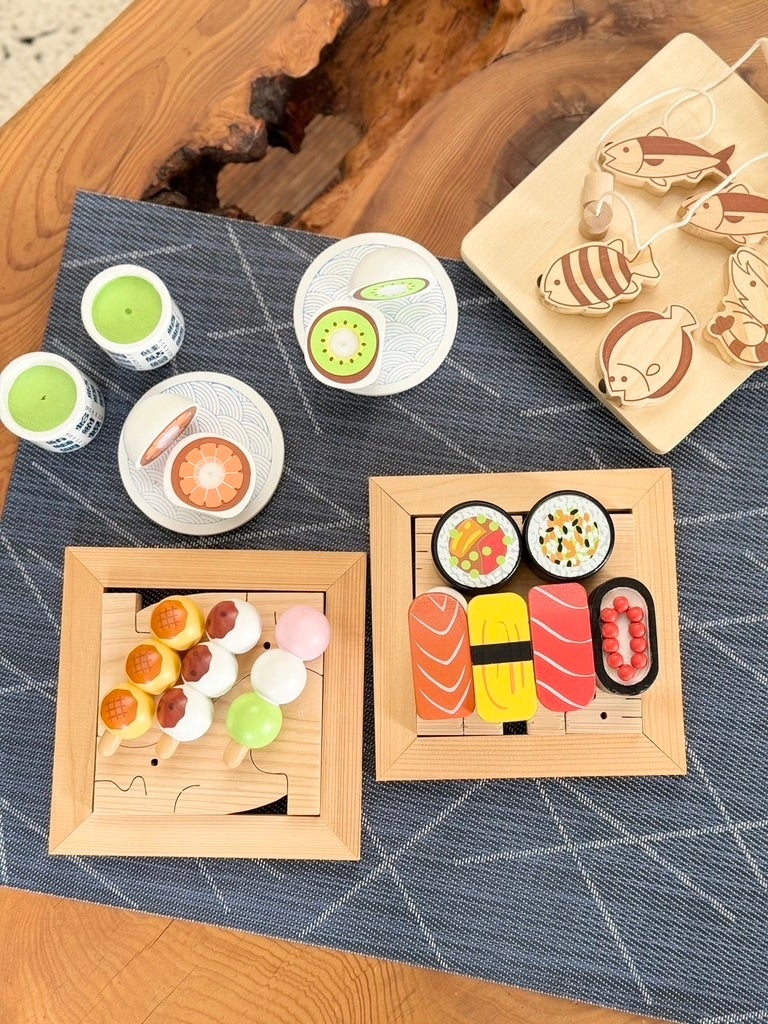 木育広場とは、木でできたおもちゃ、かんなくずプールなど「木と触れ合い」「木と学び」「木と生きる」そんな経験ができるスペースです。タツミハウジングの木育インストラクターにより制作いたしました。