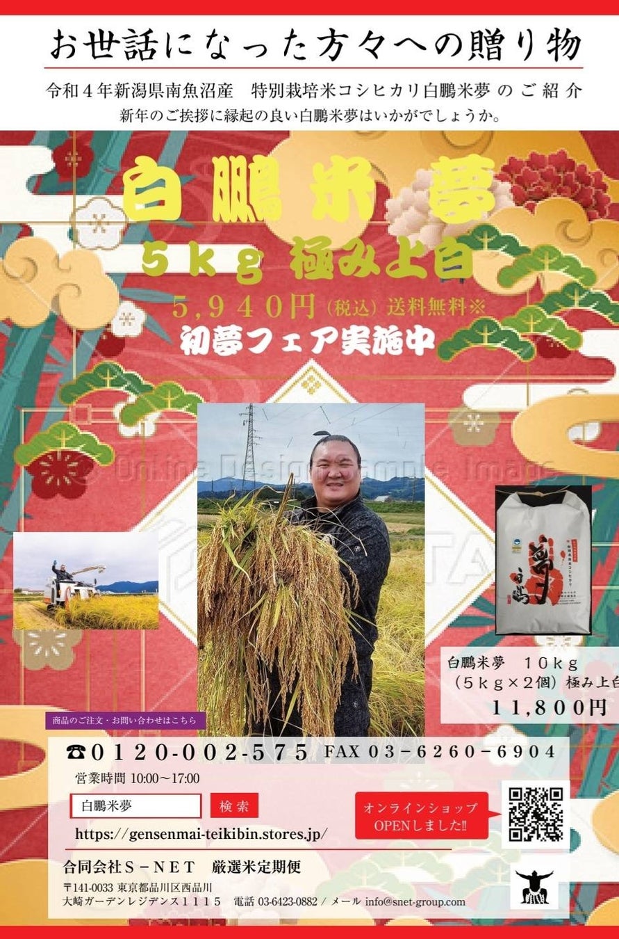 ★令和5年1月に届く白鵬米夢は夢色紙の当選確率が6.9倍UP!