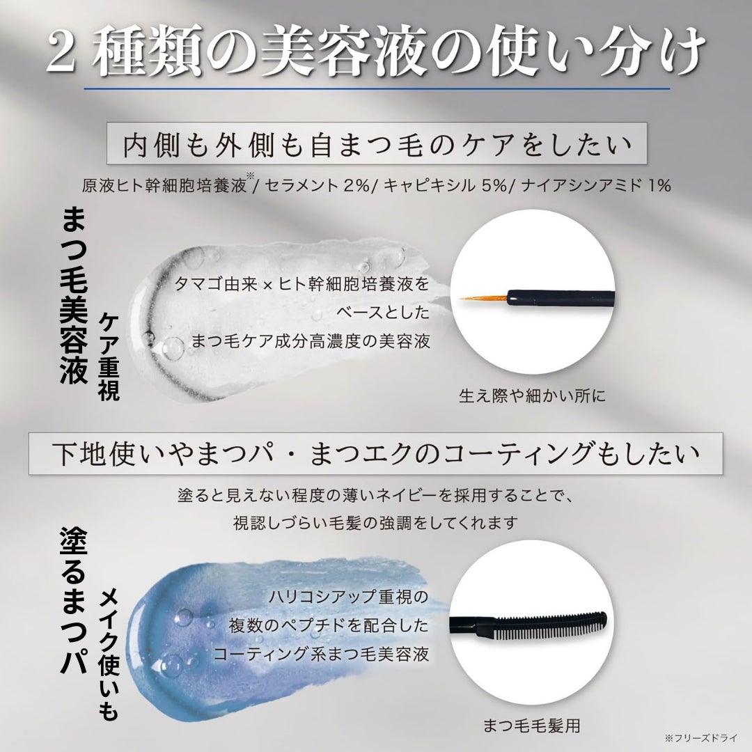 「塗るまつパ™美容液×まつ毛美容液」の融合と「シリコンコーム×極細筆の2way仕様」が"日本初"、卵プラセンタ由来幹細胞成分の配合量が"日本最高濃度"として認定